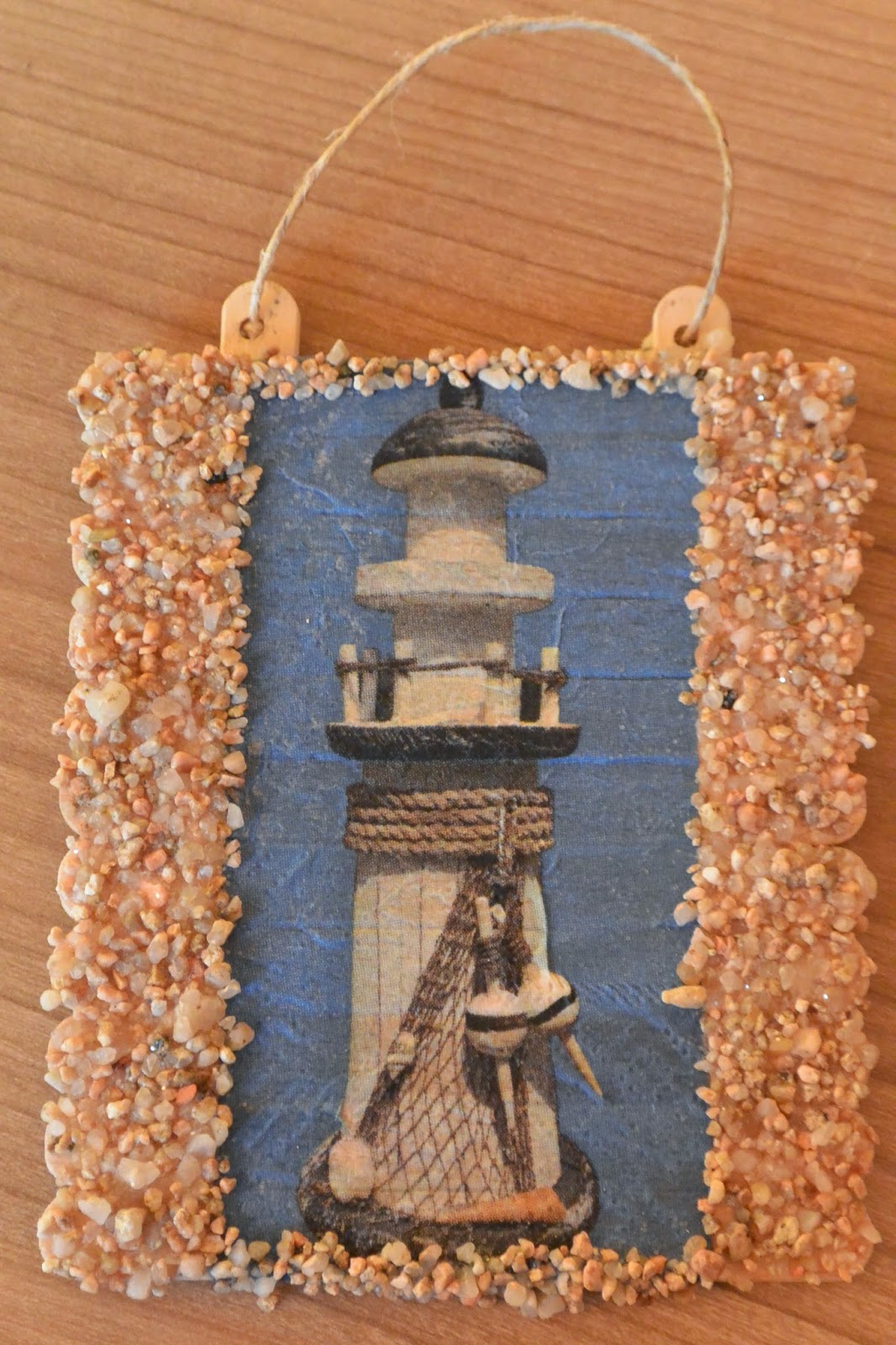 Potem sem v servjetni tehniki nalepila sliko svetilnika in školjke.