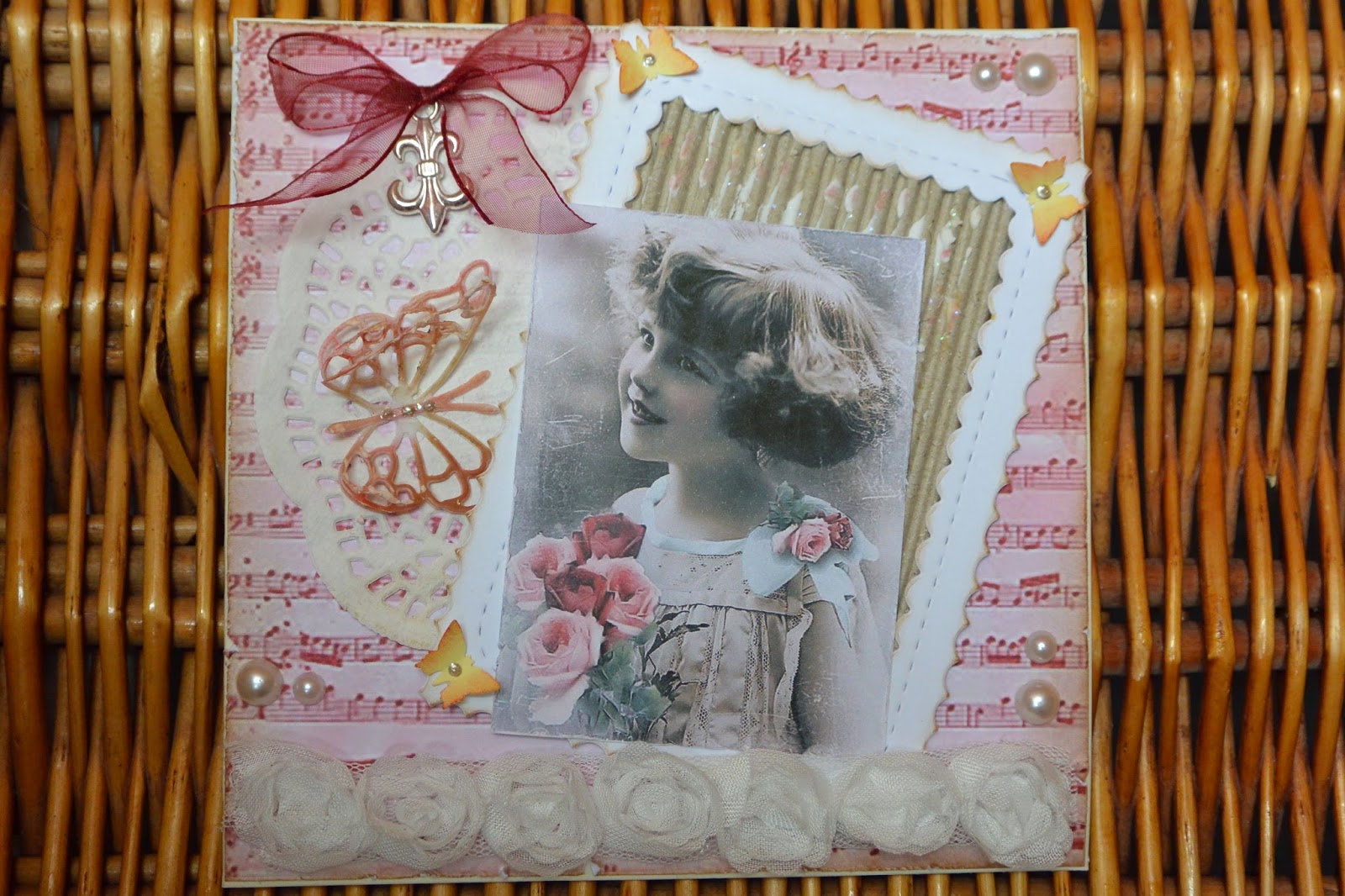 Pa sem se preizkusila v še nečem zame novem - poskusila sem narediti vintage voščilnico, ki so mi pri drugih ustvarjalkah zelo všeč, sama pa nekako ne znam skombinirati cele kupe dodatkov, ki bi lepo pasali skupaj.